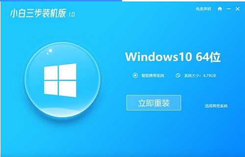 小白三步裝機版工具是一款支持在線重裝windows系列系統的工具,操作簡單實用,在小白三步裝機版軟件中提供Windows1064位系統,那么,如何使用小白三步裝機版官網下載安裝win10呢?下面小編就來給大家分享一下小白三步版如何安裝win10系統的,一起拭目以待吧。