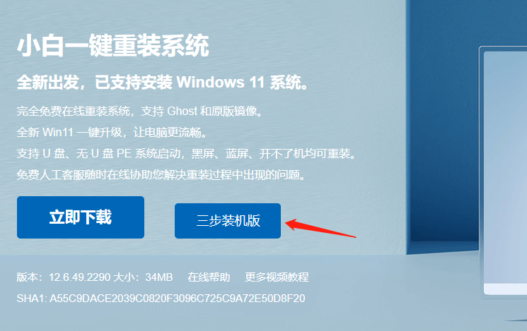 小白三步裝機最新是小白系統官網新推出的全新版本,小白三步裝機版全新版V1.0.0.90版是小白官網精心打造的一款工具,可簡單,且快捷的實現win11,win10,win7,win8以及winXp系統的在線一鍵重裝,成功率幾乎接近100%,在一鍵重裝系統獨領風騷。下面小編就給大家帶來小白三步裝機版介紹。....