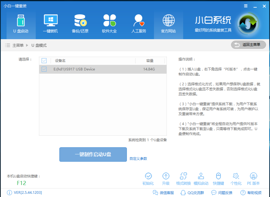 小白一鍵重裝系統2018 一鍵式自動下載安裝系統,專業客服解答確保裝機無憂 xp/win7/win8/win10多種系統選擇,滿足您的需求 提供u盤啟動盤制作工具,u盤修復工具,裝機的好幫手 支持U盤裝系統,制作1個U盤,可永久裝N臺電腦