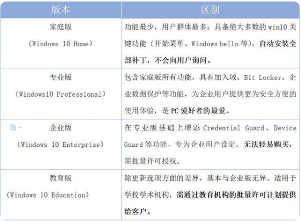 win10系統版本有多種,常見的就有win10專業版,win10企業版,教育版,和家庭版等.有網友想了解不同的win10版本有什么區別,下面小編就給大家詳細介紹下不同的win10版本的區別.....
