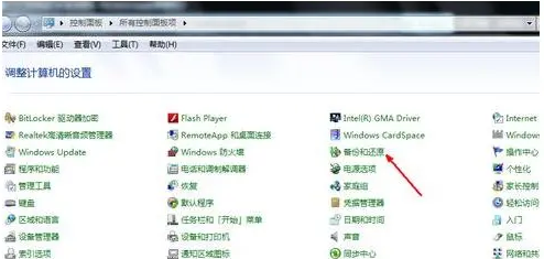 方法二:進入控制面板的備份 還原頁面進行恢復