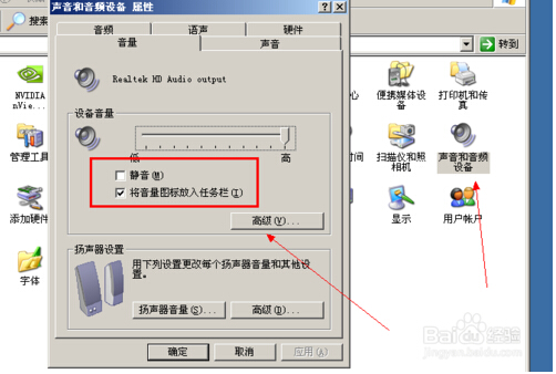 大家可以進入控制面板里面,找到聲音和音頻設備,并打開它。在聲音和音頻設備屬性里面將“將音量圖標放入任務欄”前面的勾選勾上。Win7系統則可以參考:Win7音量圖標不見了 。