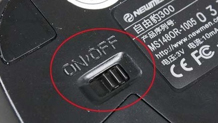 1、 假如你的鼠標平時都是會亮的情況,現在就不亮了。那么可以先檢查鼠標底部的開關是不是被關閉了。沒有開關的,就看下鼠標電池是不是松動了。注:“ON”為開啟狀態,“OFF”則是關閉狀態。