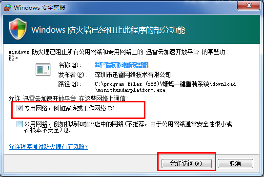 打開安裝好的一鍵重裝軟件,點擊完成安裝(若出現防火墻提示,請點擊解除阻止(XP系統)或允許訪問(Win7系統));