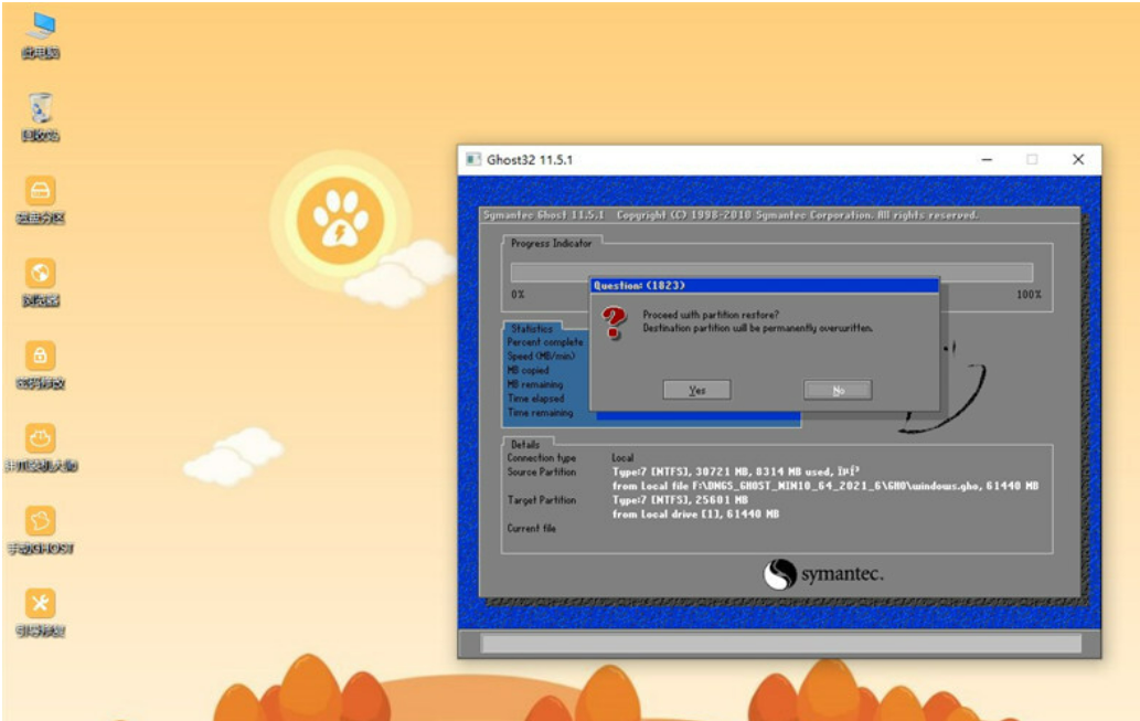 12、彈出提示框,點擊Yes,開始執行系統重寫過程;