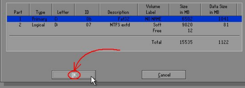 4、出現選擇源分區窗口(源分區就是你要備份的那個分區),單擊系統所在的分區(通常為1區,一定要弄準),再單擊“OK”。