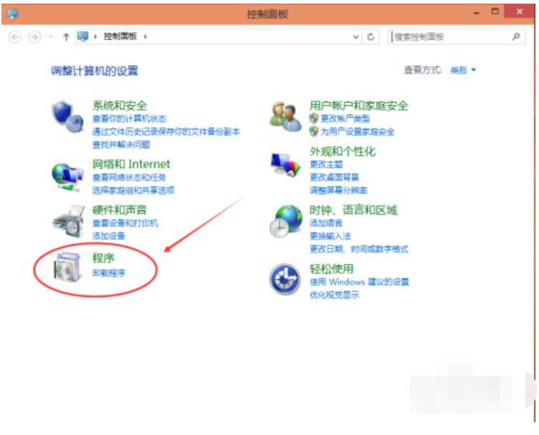 2、點擊控制面板窗口里的“程序”,如下圖所示。