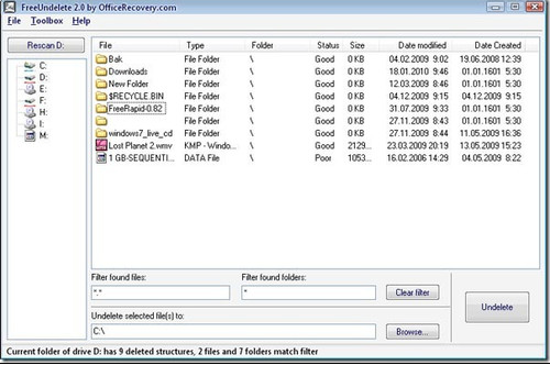 FreeUndelete是一款專門用來恢復被誤刪除文件的軟件,完全免費。需要在NTFS文件分區上使用,FreeUndelete不支持微軟早期FAT,FAT32分區。需要進行文件恢復的分區不能進行寫硬盤操作,所以絕對不要把FreeUndelete 安裝到要恢復的分區下,也就是說如果要恢復的文件在D盤,則可把FreeUndelete安裝在C盤下。