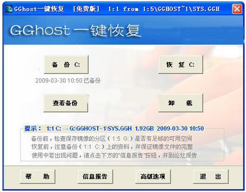 使用GGhost的第一感覺就是超級簡單,因為它基本不需要人工操作什么,我唯一操作的地方就是選擇備份文件所保存的路徑,其余都是自動進行的(包括備份和恢復都是一樣的流程)。