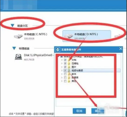 3. 軟件界面會顯示讀取到的電腦分區信息,找到受損分區勾選上,點擊文件設置按鈕來自定義掃描文件的格式,減少掃描時間。