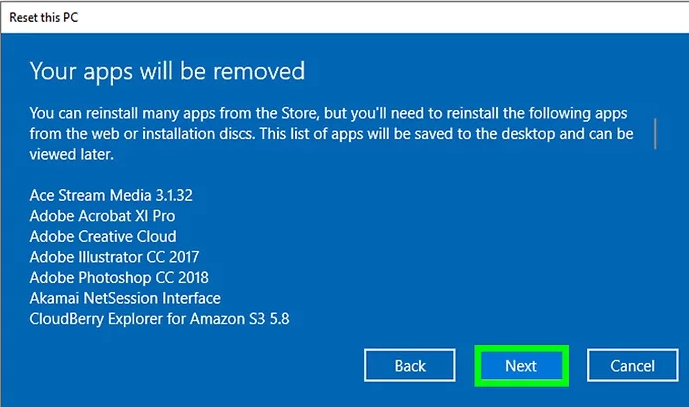 keep my files: 保留文件。盡管您在獲得計算機后安裝的所有應用程序都將被刪除,但您的個人文件(例如圖像和文檔)將保持不變。