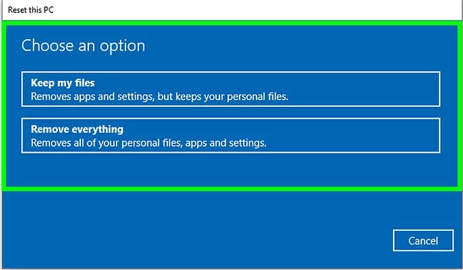 remove everything: 刪除所有內容以清除計算機上的所有數據,包括您的個人文件。
