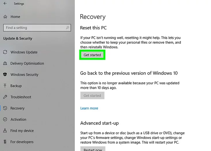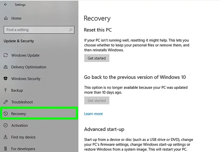 3、選擇【recovery】后,再點擊右側的【get stared】。