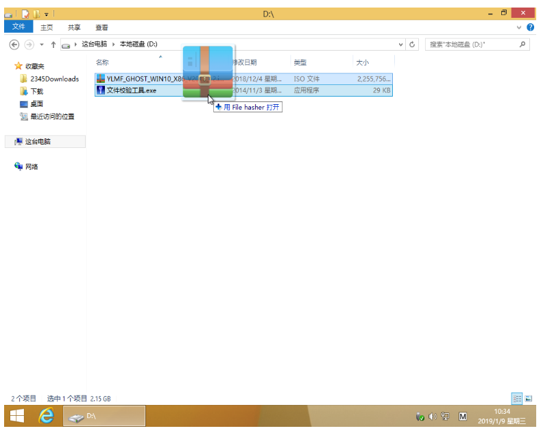 1、首先把“系統”以及“文件校驗工具”下載到本地硬盤上, 兩個文件下載完后打開文件目錄,然后把“文件校驗工具”解壓。解壓完畢之后,運行文件校驗工具,并把下載好的系統拖入該軟件。