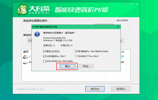 5、彈出窗口后我們默認選擇是,打開網卡驅動和usb驅動。