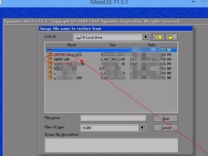 3、選擇需要還原的文件點擊open。