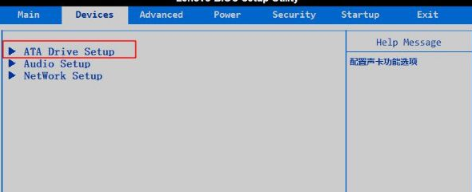 1.我們在電腦開機頁面下一直按啟動熱鍵進入bios,然后通過方向鍵移動到“devices”選項處,找到“ata drive setup”并點擊。