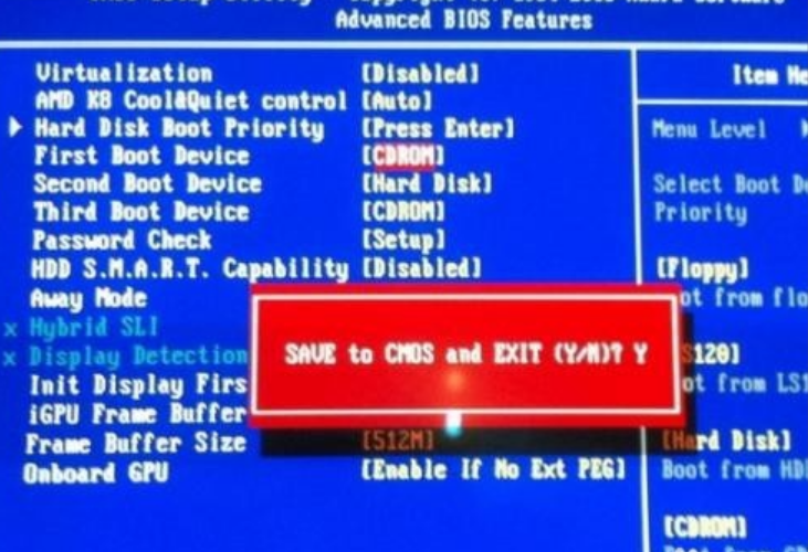 6、然后按F10保存,鍵盤上鍵[Y]就行了。