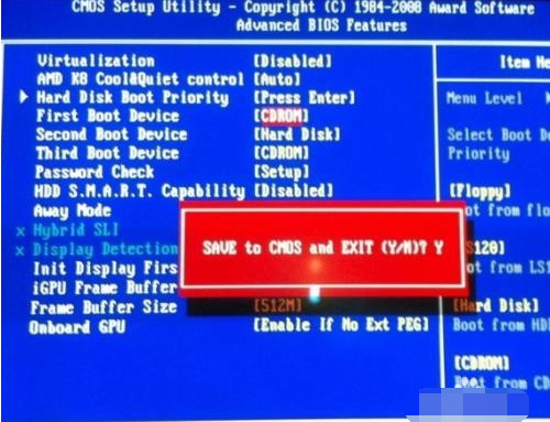 6、按F10保存,鍵盤上鍵[Y]即可。