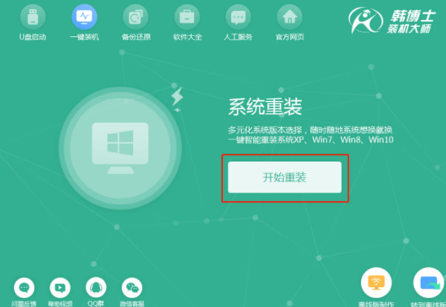 下載打開韓博士一鍵重裝系統軟件,然后根據步驟操作即可完成。