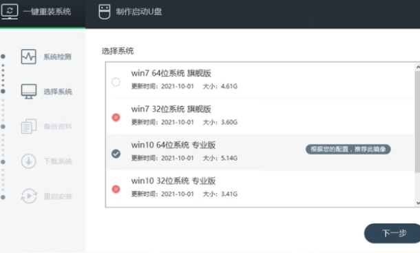 5.重啟電腦,此時就能啟動電腦了,找到桌面上面的重裝系統圖標,進入程序后,點擊重裝系統,它會自動進入系統重裝狀態,只要你網絡連接穩定正常,它會自動給電腦匹配合適的系統文件,用戶此時要做出勾選選擇,確定后就自動傻瓜式的進行重新安裝了。