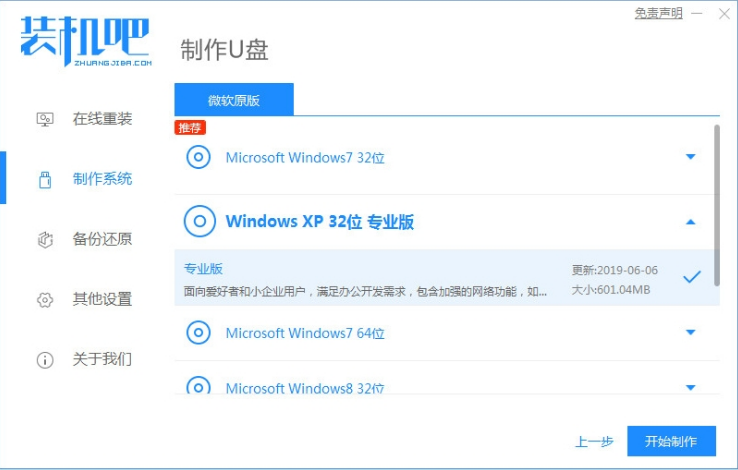 2、選擇我們需要安裝的電腦系統,鼠標點擊開始制作啟動盤。