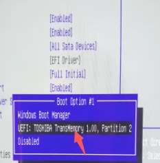 2、進入boot設置之后,用上下方向鍵選擇boot option #1窗口所在的位置,回車鍵選擇u盤啟動便會進入快啟動主菜單,然后我們就可以根據其他電腦U盤重裝的步驟來重裝電腦了。
