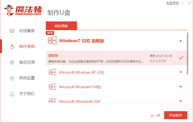 1、打開魔法豬系統重裝大師;插入U盤,點擊制作U盤;
