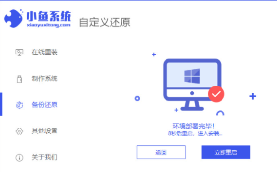 5、等待系統的還原操作,雙擊“立即重啟”。