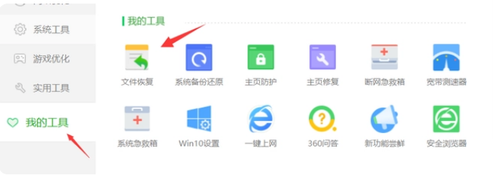 2、進入功能大全,在我的工具中找到并選擇“文件恢復”選項。