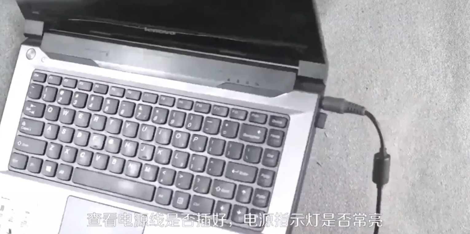 2、檢查筆記本電源適配器:當電源適配器損壞的時候,筆記本因為沒有的電也是無法進行開機的。此時可以檢查筆記本電源適配的電源燈是否亮,如果身邊有一樣的電源適配器可以拿過來試一試,就可以判定適配器是否損壞。
