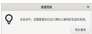 8.提示系統安裝完畢后,點擊“現在重啟”,在關機動畫界面根據提示,退出安裝介質并按“Enter”鍵繼續,重啟后即可成功進入優麒麟系統。