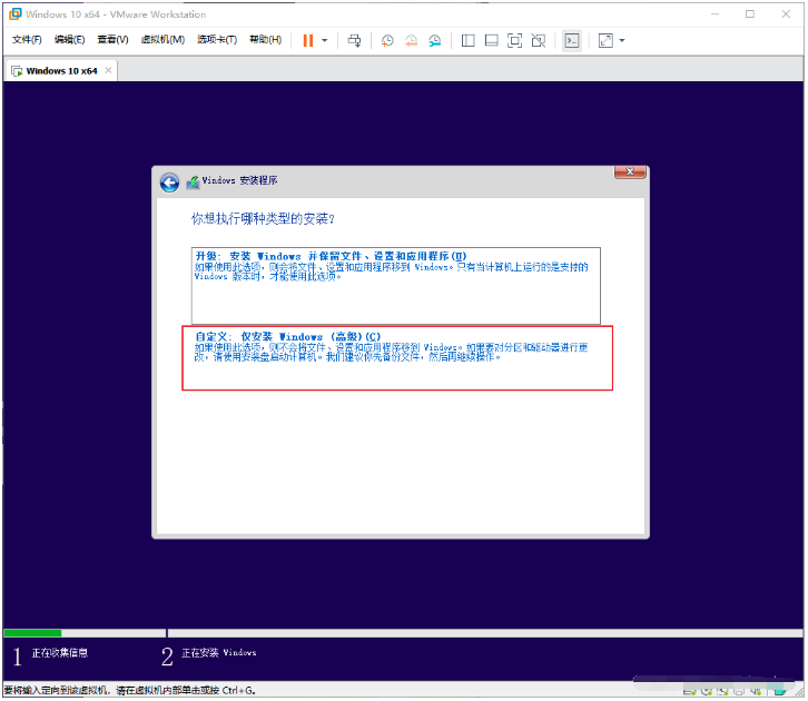 4、根據提示,依次跳過產品密鑰-選擇安裝的版本-勾選我接受協議-自定義安裝。