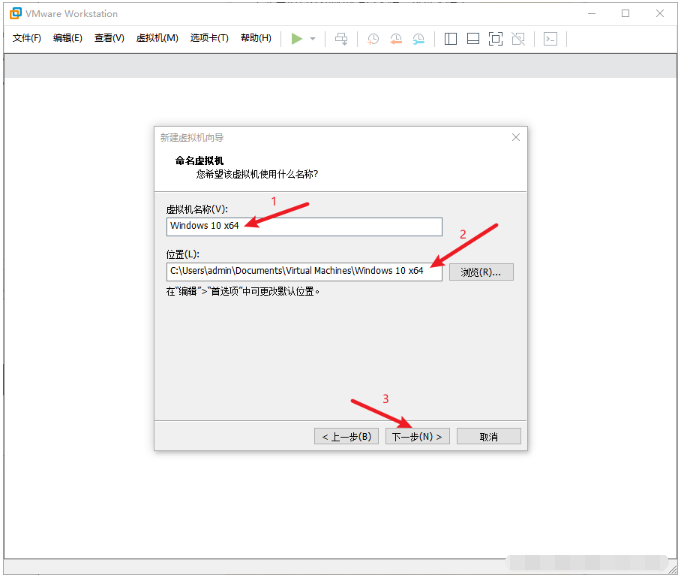 5、自定義更改虛擬機名稱,安裝位置一般是安裝到電腦的非系統盤,進入下一步。