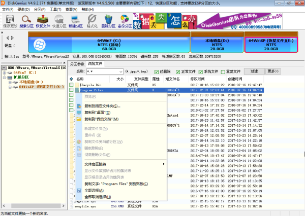 4、這時在分區大師工具主窗口中可以看到硬盤中刪除的文件,將需要回復的文件勾選,然后右鍵點擊,選擇復制路徑即可。當文件復制完成后點擊“完成”按鈕,此時來到剛選擇的文件保存路徑就可以查看到所恢復的文件。