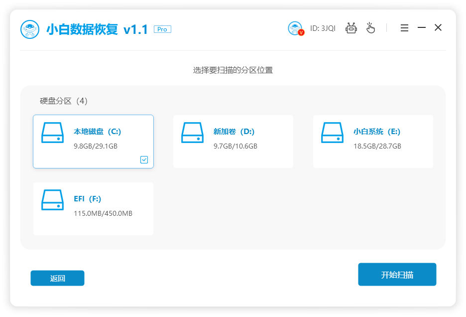 1、下載你安裝小白數據恢復軟件,打開后點擊分區恢復。