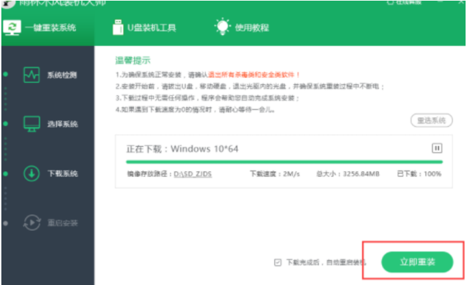 3、等待系統下載進行,隨后自動重啟,軟件便會開始自動安裝系統。