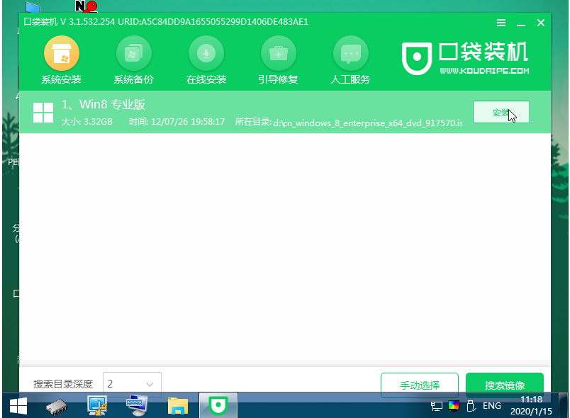 5、打開口袋裝機工具,選擇系統點擊安裝到c盤。