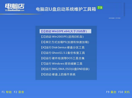 4、接下來就會進入到電腦店winpe界面,選擇第一項回車即可進入PE系統。