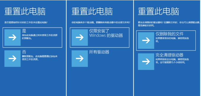 注意事項:如果提示無法重置,或者重置后問題依舊,說明遇到了靠電腦自己無法修復的故障,可以嘗試方法二的借助u盤重裝系統解決。