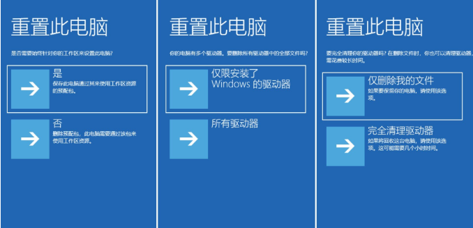 注意事項:如果提示無法重置,或者重置后問題依舊,說明遇到了靠電腦自己無法修復的故障,可以嘗試方法二的借助u盤重裝系統解決。