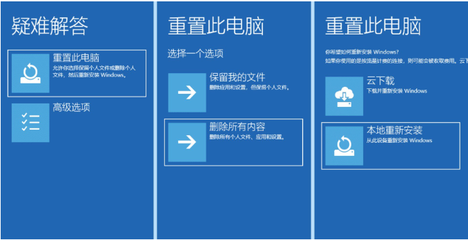 點擊重置此電腦 - 刪除所有內容 - 本地重新安裝。