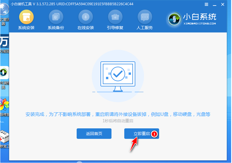 當提示安裝完成后,需要先拔掉u盤,然后再重啟電腦。