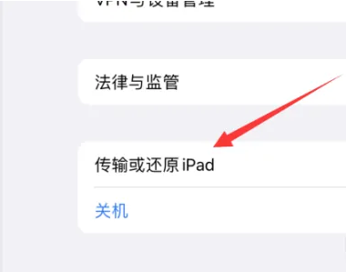 在下面找到傳輸或還原ipad選項,點擊打開。