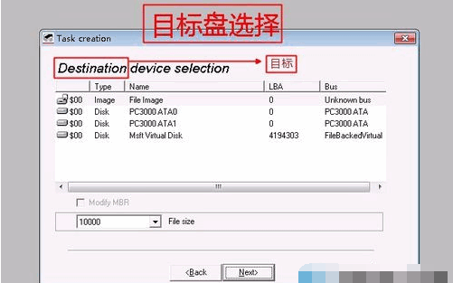 6、選目標硬盤,就是選空的好的硬盤,別選到壞的那個硬盤或者電腦上的硬盤。