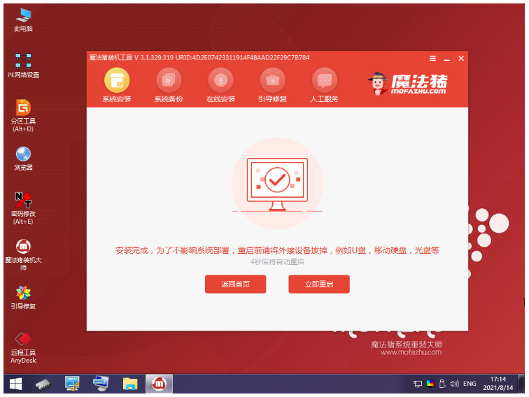 7、當提示系統安裝完成后,我們點擊立即重啟即可。