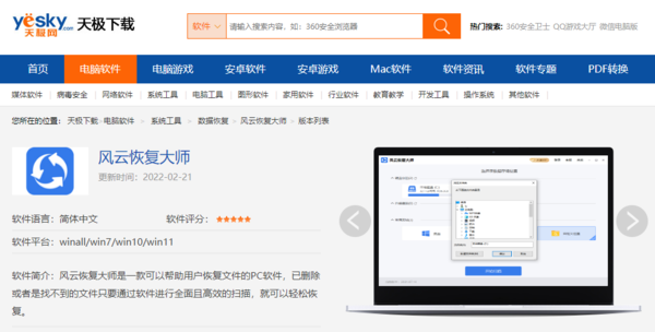 如果大家經常和辦公軟件打交道的話,那對于風云家族的軟件定不陌生;而風云恢復大師則是風云家族軟件的其中之一;而且,風云恢復大師的表現也時非常出色的,支持眾多回收站數據恢復等方面的數據恢復,全方位地為我們的數據保駕護航,且軟件的界面風格非常簡潔,對于追求效率的辦公一族來說是非常實用的。