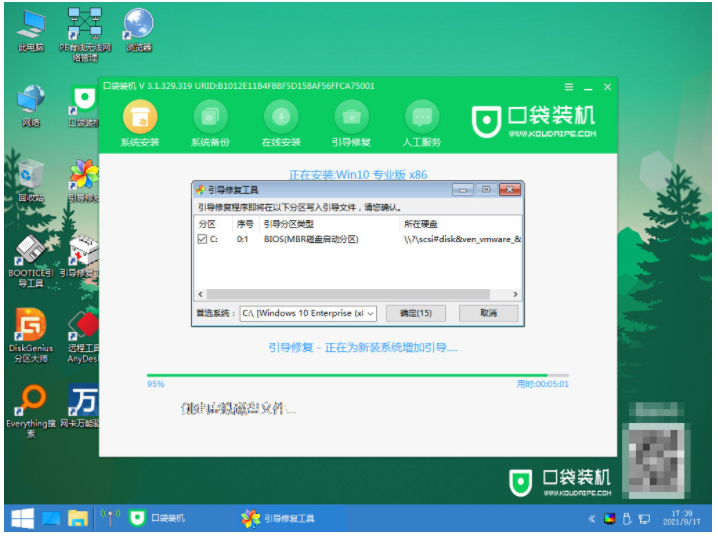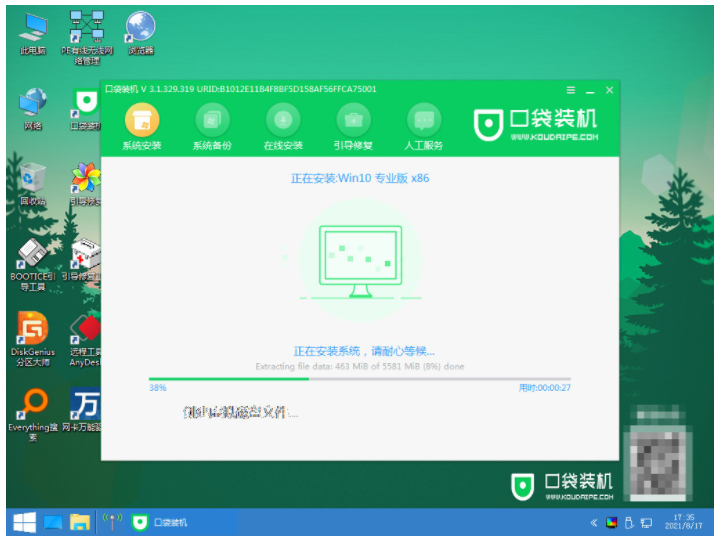 5、在pe系統桌面上打開口袋裝機工具,然后選擇需要安裝的系統點擊安裝。