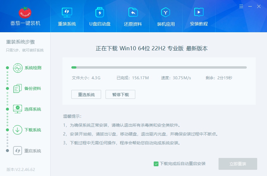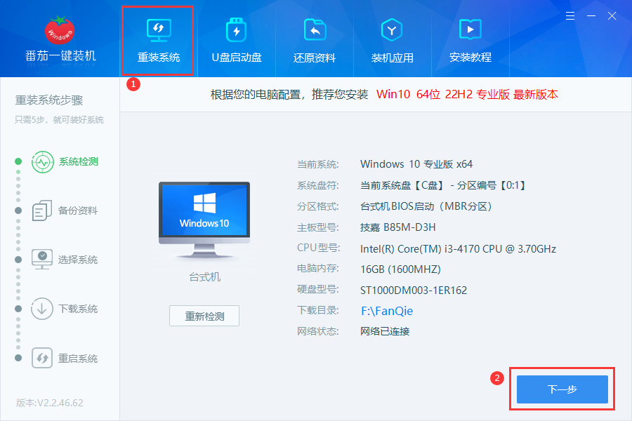 使用番茄一鍵裝機軟件進行系統重裝