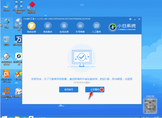 7、提示系統安裝完成后,點擊立即重啟。
